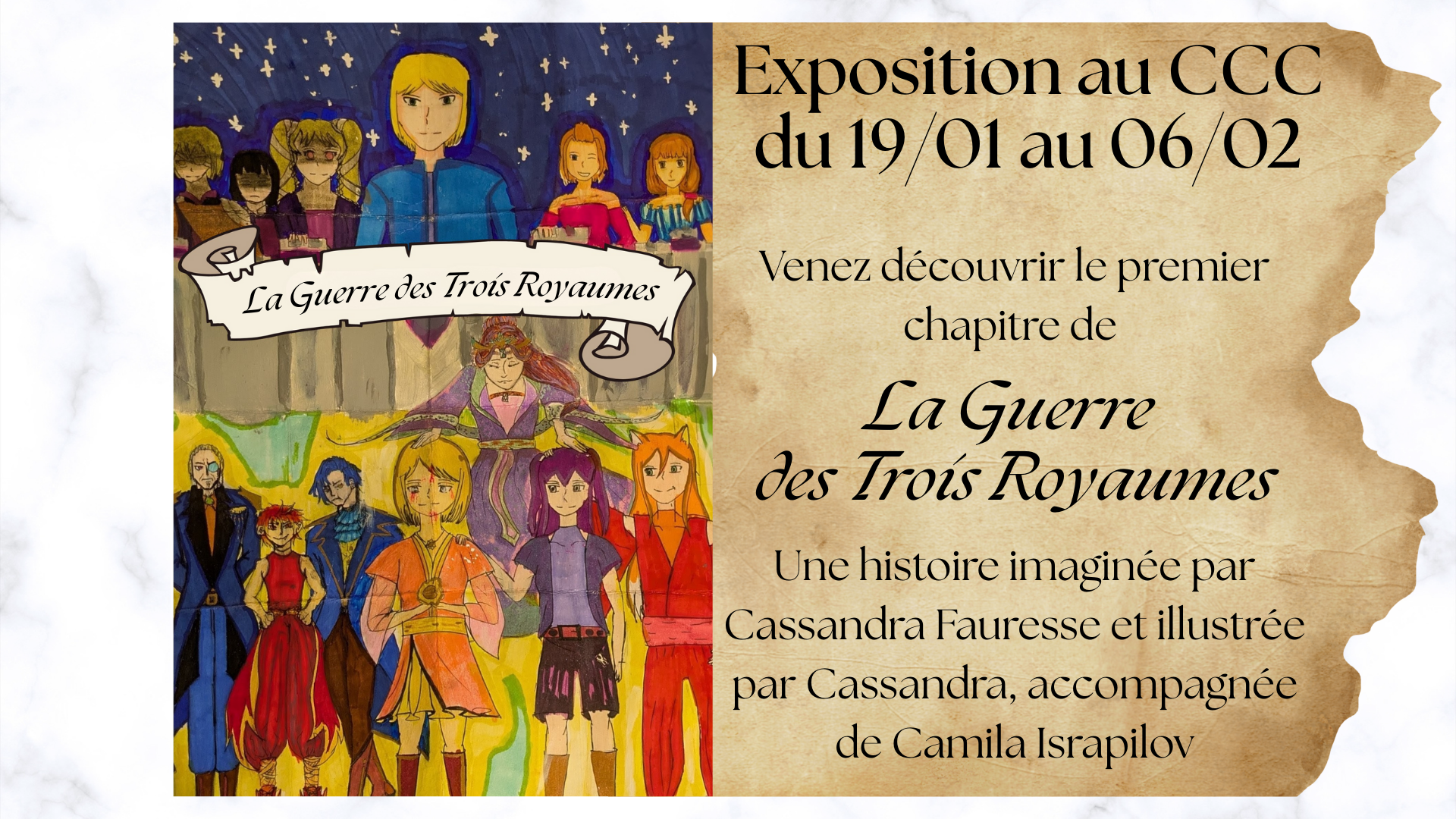 Cassandra Fauresse, élève en 1G02, présente l'univers de son manga, en cours d'écriture. Dans le hall du CCC jusqu’au 06/02.