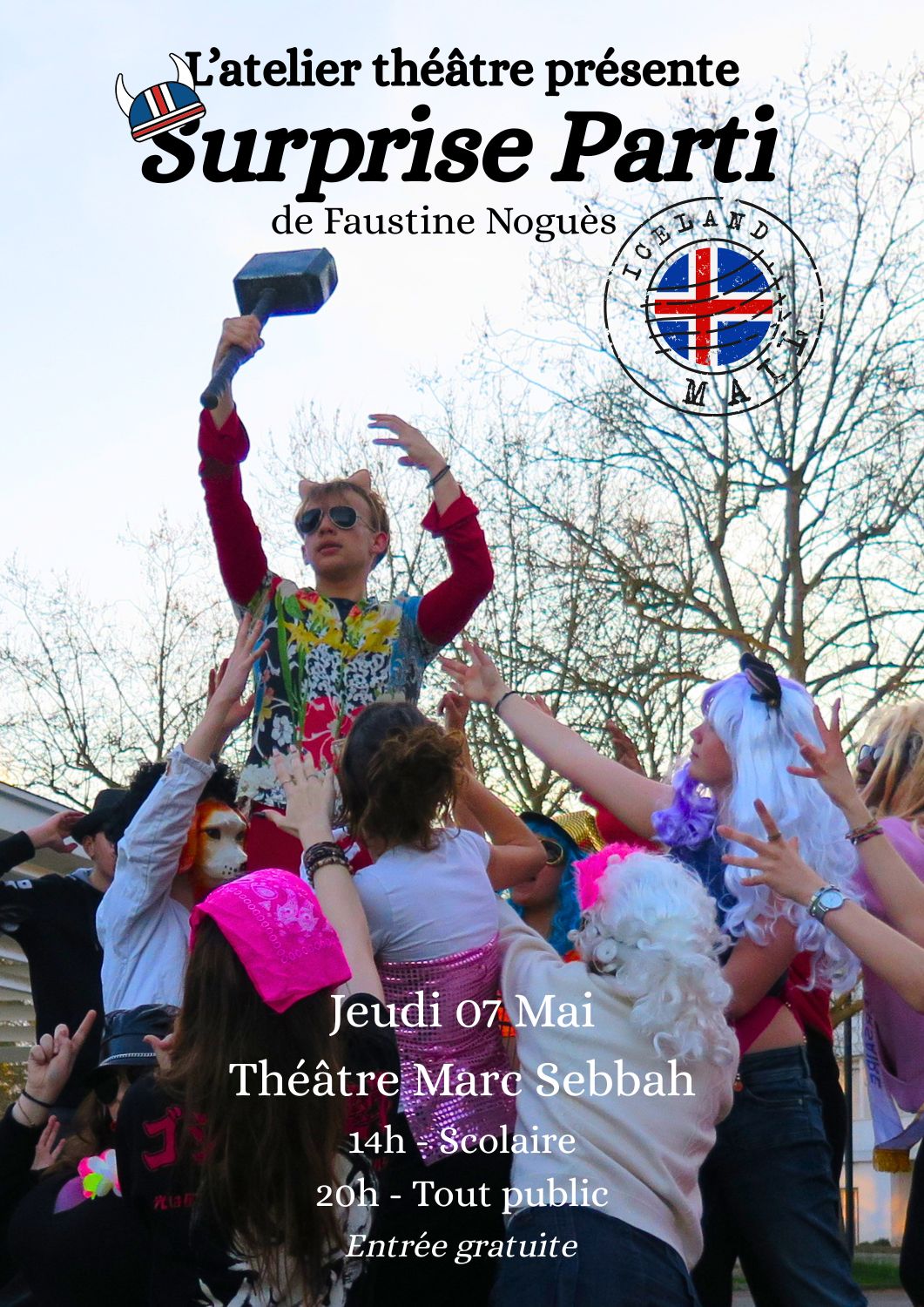 L'atelier théâtre a le plaisir de vous inviter le Jeudi 7 Mai à 20h au Théâtre Marc Sebbah de Muret pour la représentation de cette comédie politique racontant l'élection de l'humoriste Jon Gnarr aux municipales de Reykjavik en 2010. Entrée libre.