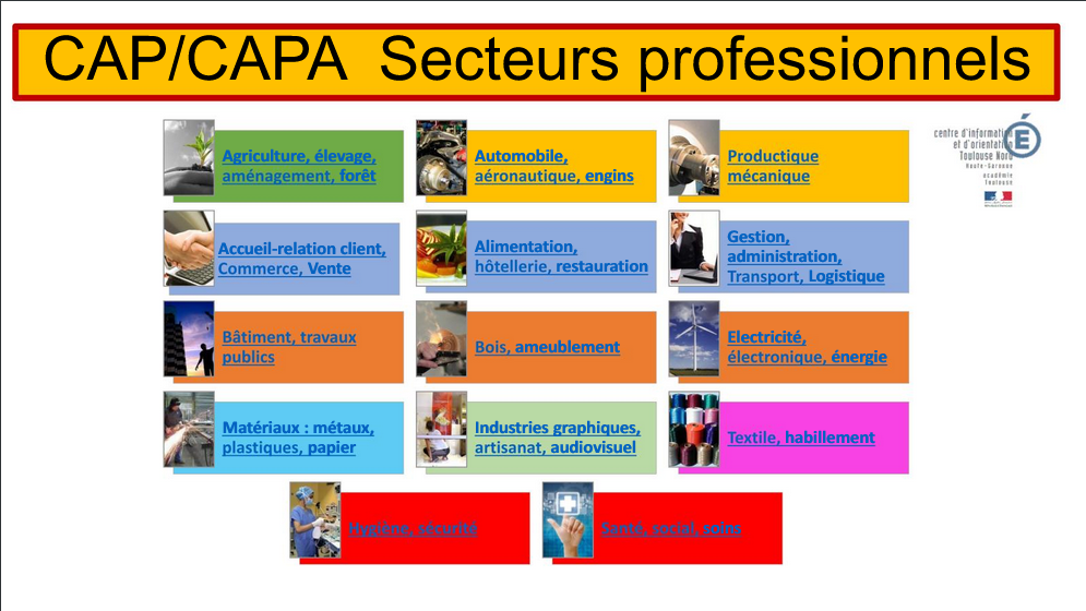 Les CAP par secteurs professionnels : |